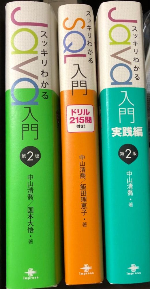 こちらは1月~3月までいっていたプログラミングの学校で使用していたJAVAとSQLの本たちです。