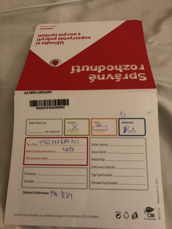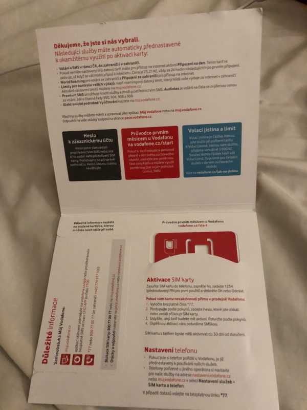 今回チェコのボーダフォンでプリペイド simカードを購入することができました。