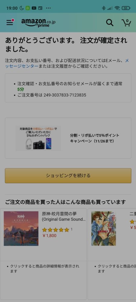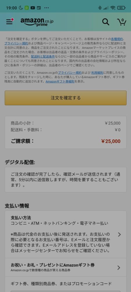 注文を確定してメールがくるのを待ちます。