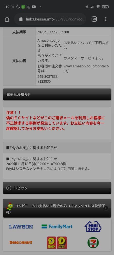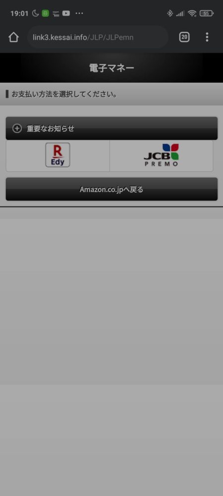 メールがきてリンクを開いたら一番下にある電子マネーのEdyを選択します。