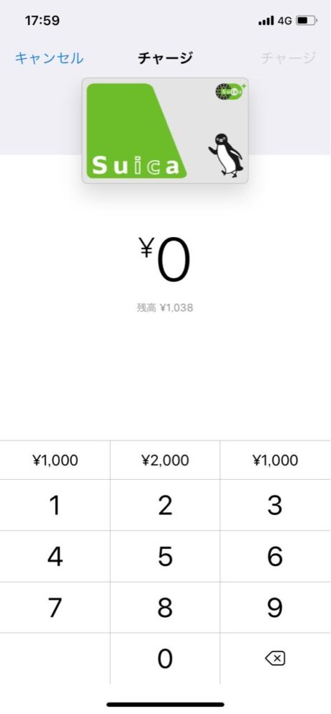 ここからチャージしたい金額を入力してチャージをします。