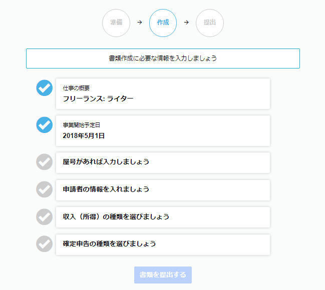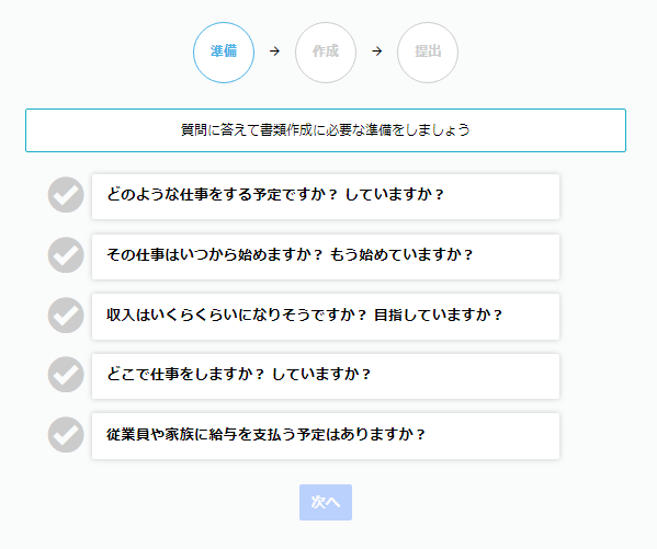 指示された質問に記入していくだけの安心な設計なので間違う心配もないから、誰にでもすぐ間違いなく開業届と青色申告用紙が作成できてしまいます!