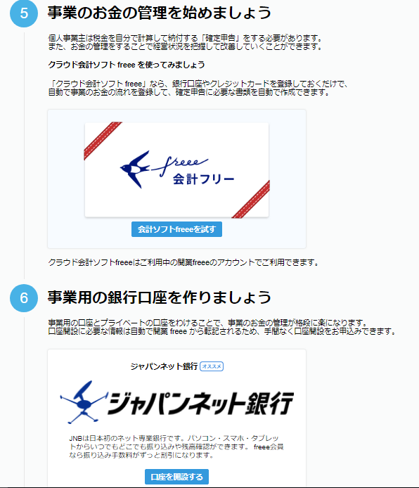最近、会計クラウドシステムを作っているfreee株式会社が提供しているところなので、ぜひ一度開業する前に見てみてください!