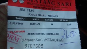 今回はジョホールバル(ラーキン)からマラッカへ行きます。