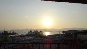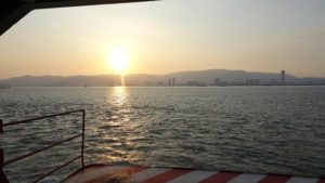 フェリーから夕日はとてもきれいでした。