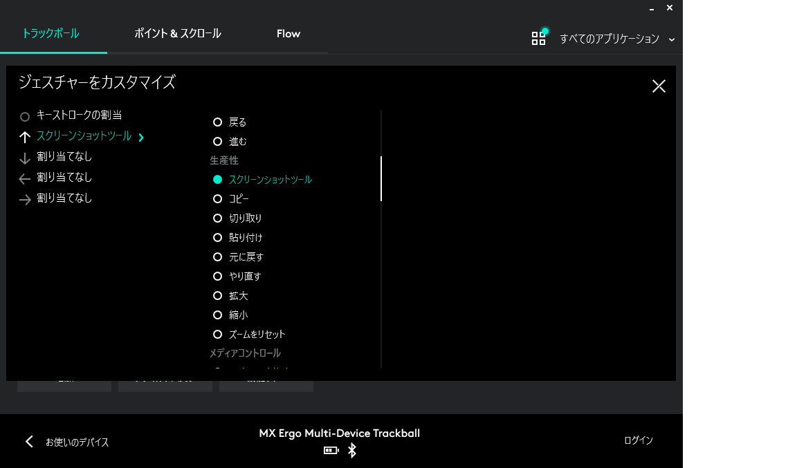 ペアリングして新PCで設定していて気付いたのですが、Logicoolのボタン割り当てには初期設定でスクリーンショットを撮るという機能が割り当てられます。