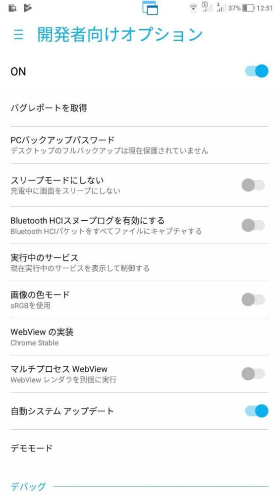 開発者向けオプションを付けている人はここも確認しておきましょう。