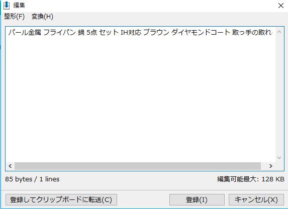 先ほどの、定型文の登録時と同じように、コピーをするとクリップボードに登録がされます。