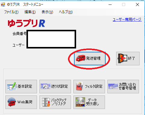 まずはゆうプリRのトップ画面から「発送管理」を選びます。